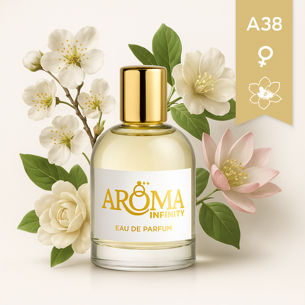 Cœur du parfum : jasmin et bois de santal, révélant une alliance florale et boisée.