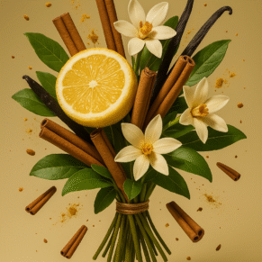 Notes de tête : safran précieux et fleur d’oranger, offrant une ouverture chaude et lumineuse.