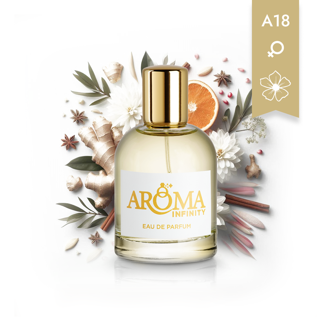 Notes de tête : fleur de gingembre, fleur d’oranger, grenade, poivre rose